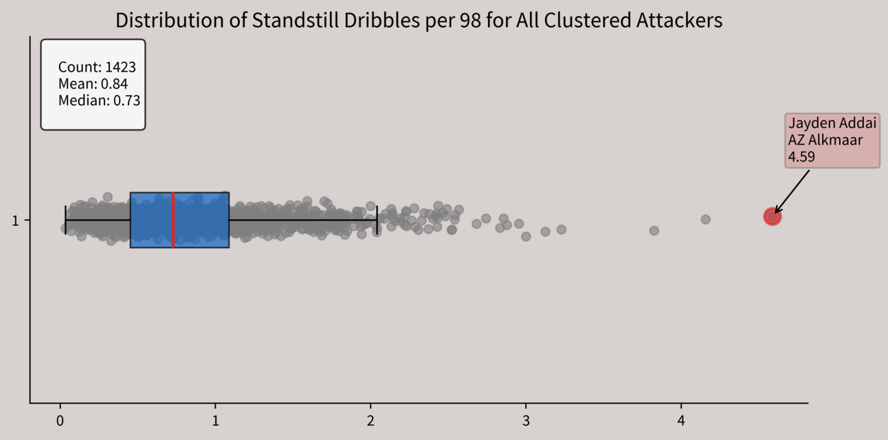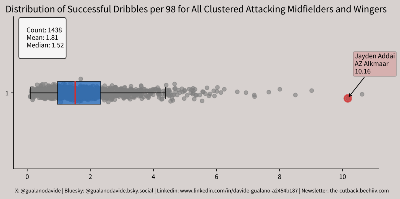 Perhaps most remarkably, Addai's take-on statistics place him in an extraordinary position among non-attacking midfielders and wingers with at least 600 minutes played.