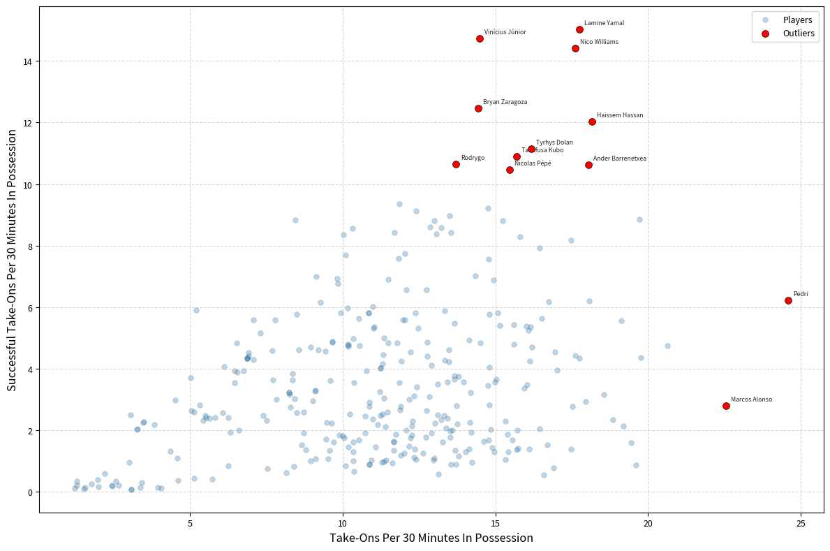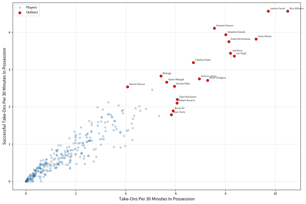 Because explosiveness is something really important in the modern game. It's what allows you to beat your man and create space. And I'd actually worked on something similar before — a proxy for take-ons where the player starts from a near-standstill, built entirely from my event data.