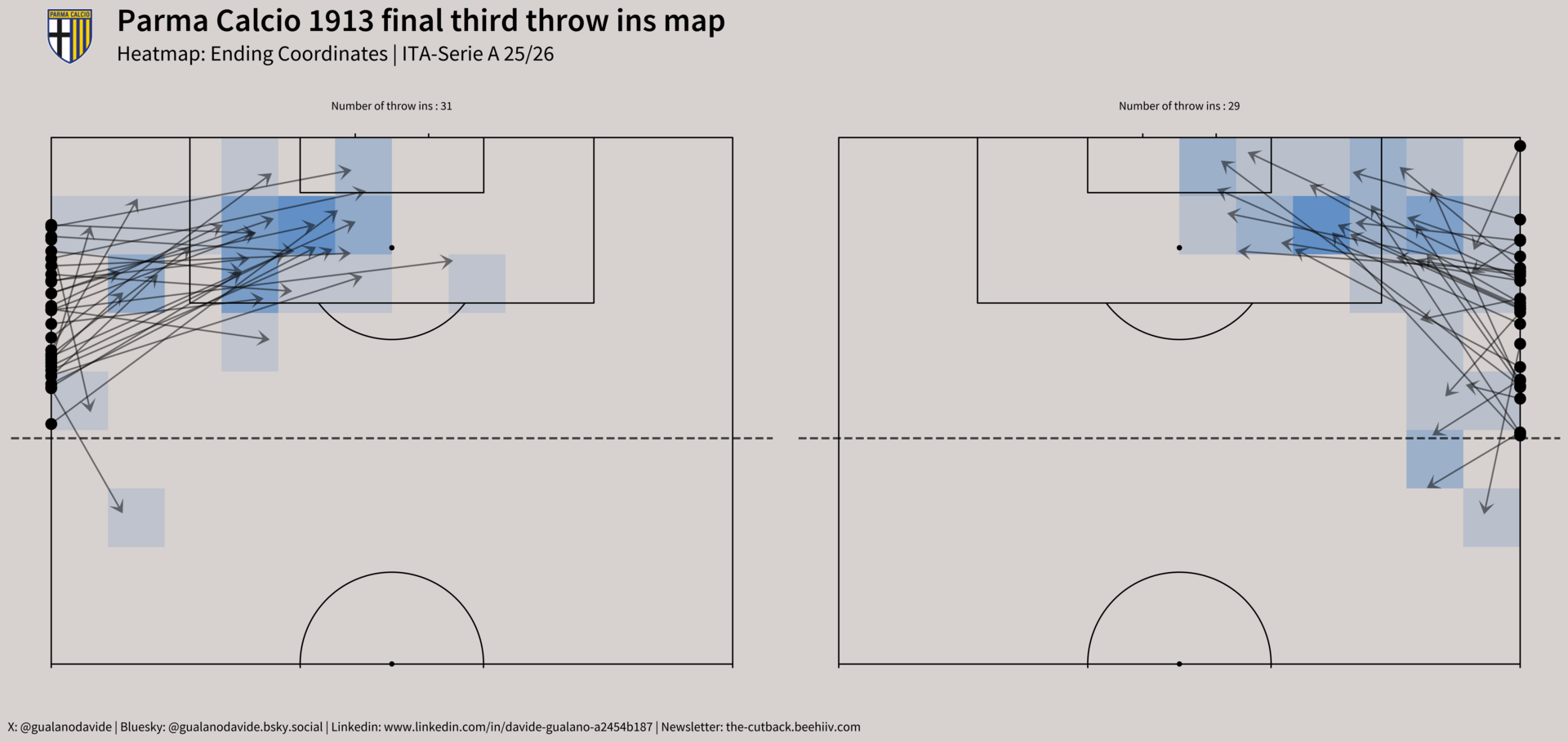 The Carlos Cuesta effect is real. Between the set piece analysis from my last post and now this throw-in deep dive, it's clear that Parma has a dedicated, systematic approach to dead ball situations that's producing tangible results.